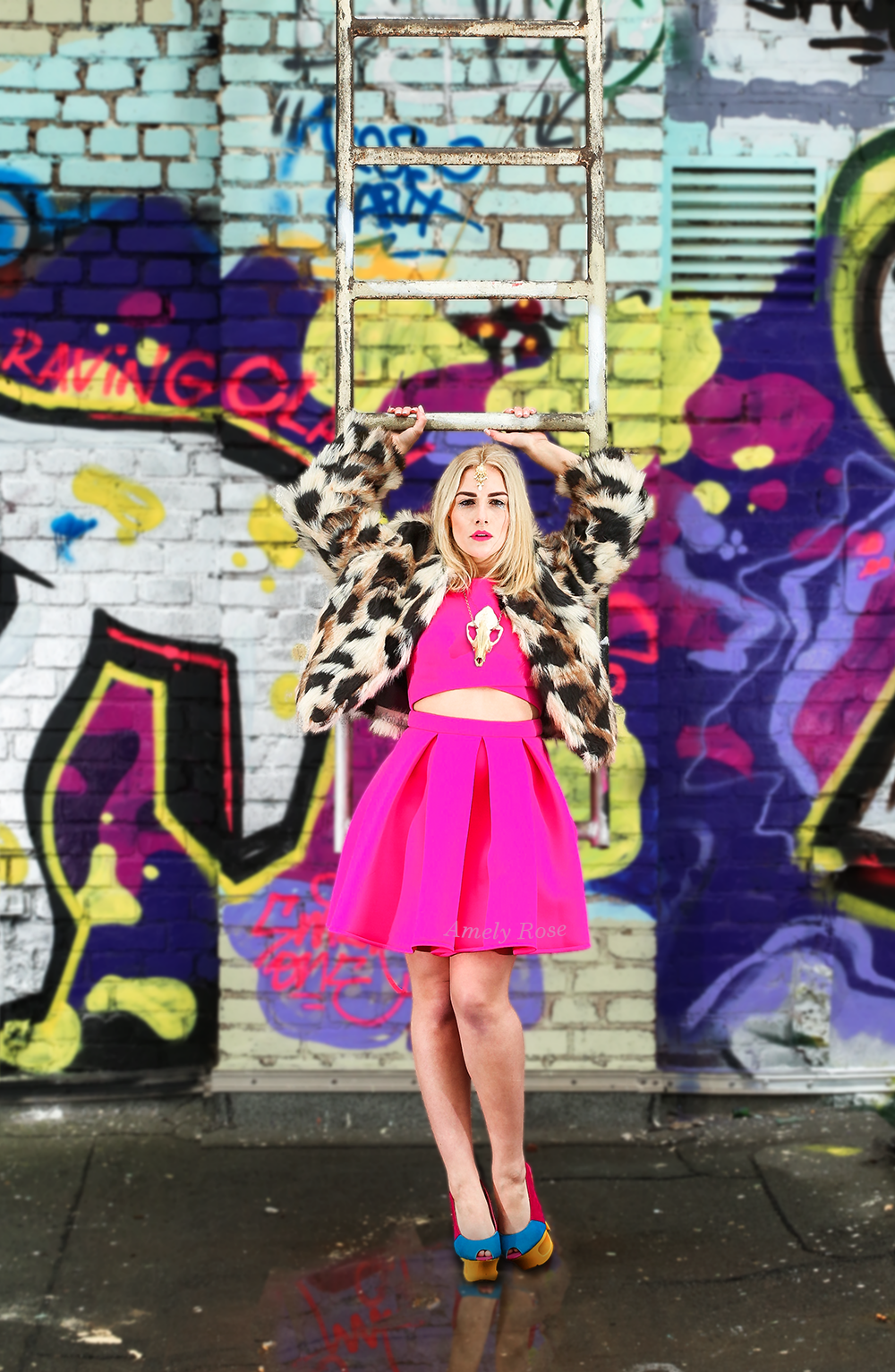 while I crest (in my heels) the abandoned factory building, next to the beautiful river "Rhein"